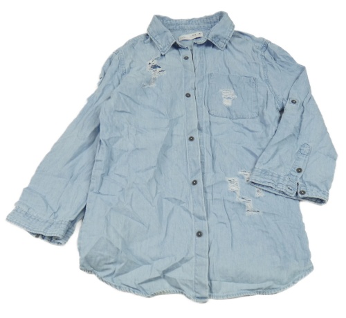 Světlemodrá lehká riflová halenka s dírami a kapsou Zara