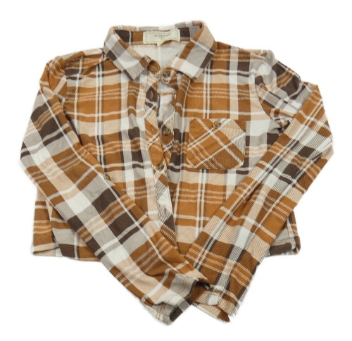 Hnědo-bílá kostkovaná crop halenka