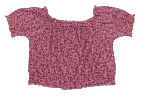 Růžová kytičkovaná strukturovaná crop halenka Page