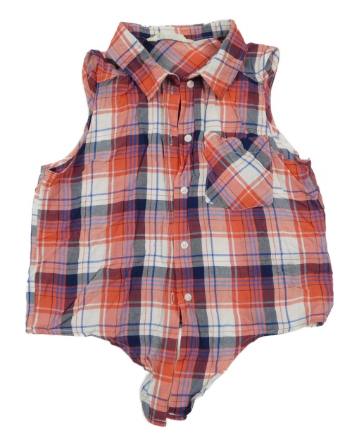 Červeno-bílo-safírovo-tmavomodrá kostkovaná letní crop halenka H&M