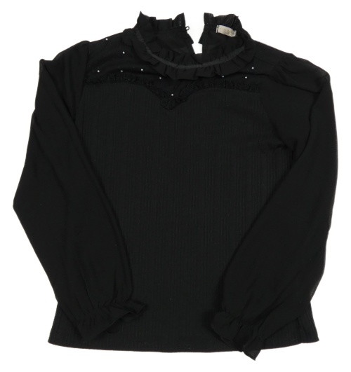 Černá žebrovaná halenka s šifonovými rukávy a korálky