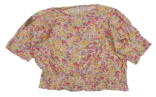 Bílo-růžovo-oranžová květovaná crop halenka
