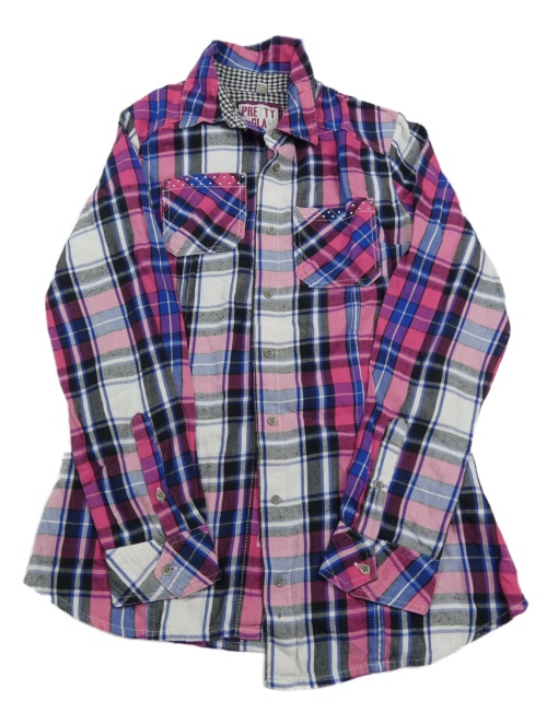 Fuchsiovo-bílo-černá kostkovaná halenka C&A