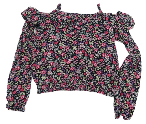 Černá crop halenka s kytičkami a volnými rameny a volánkem Page one young