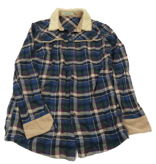 Tmavomodro-zelená kostkovaná halenka s huňatým límcem