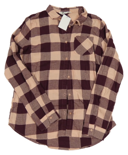 Nové - Vínovo-světlerůžová kostkovaná flanelová halenka H&M