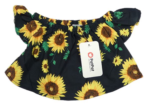 Černá crop halenka se slunečnicemi a volánky PatPat