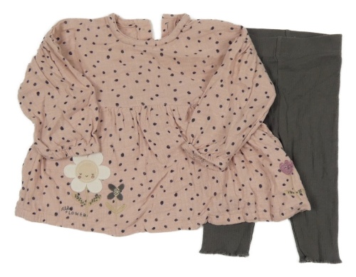 2set - Světlerůžová halenková tunika s puntíky + šedé žebrované legíny Geoge