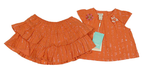Nový - 2Set - Lososovo-stříbrná pruhovaná puntíkatá halenka s květem + vrstvená sukně Monsoon