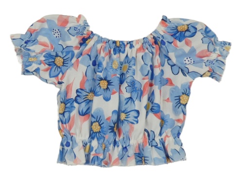 Bílo-modro-červená květovaná halenka
