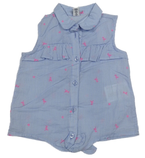 Světlemodro-bílá pruhovaná halenka s plameňáky Dopodopo