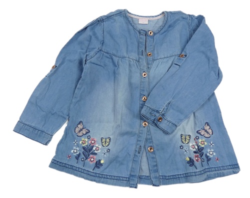 Modrá lehká riflová propínací tunika s výšivkami motýlků