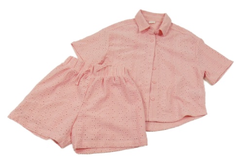 2set - Růžová madeirová oversize halenka + kraťasy Next