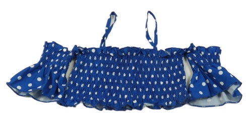 Tmavomodrá crop žabičková halenka s puntíky a volnými rameny