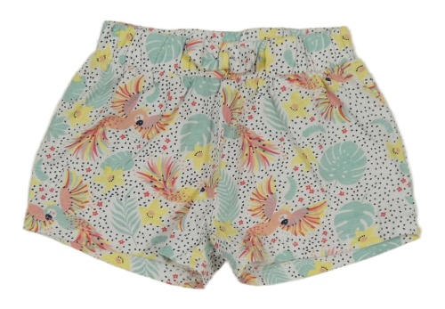 Bílo-černé puntíkaté kraťasy s papoušky a lístečky Kids