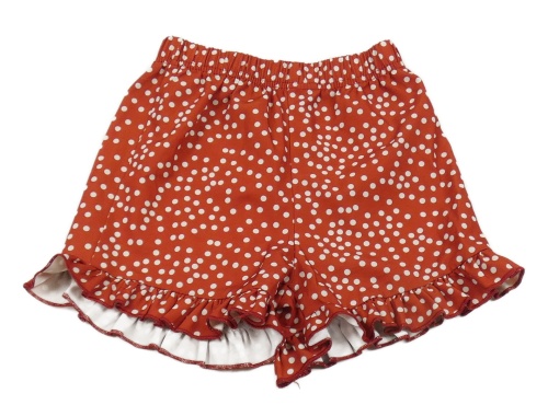 Hnědo-červené puntíkaté kraťasy s volánky Shein