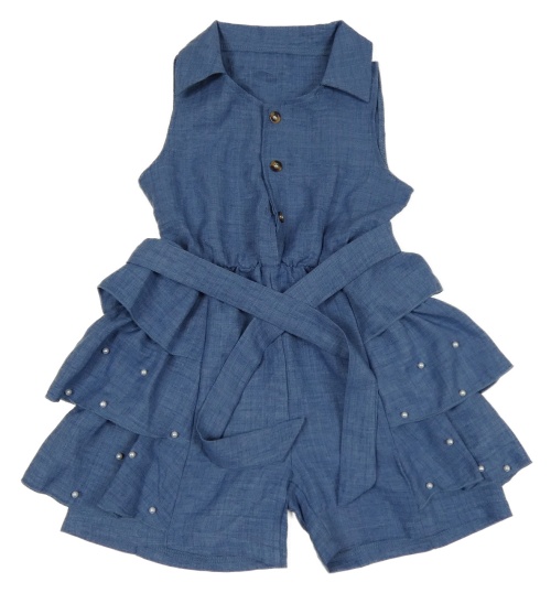 Modrý melírovaný kraťasový overal s perlami a páskem