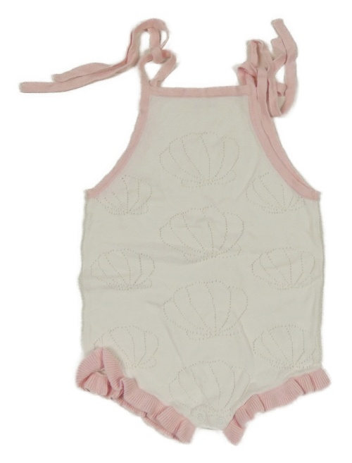 Bílo-růžový úpletový kraťasový overal s mušličkami