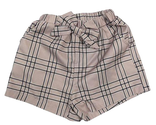 Pudrovo-hnědé kostkované kraťasy s mašlí