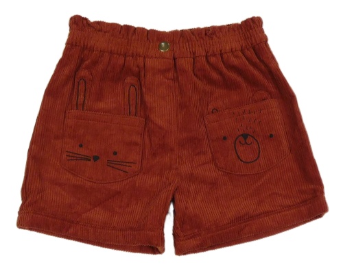 Skořicové manšestrové kraťasy s kapsami se zvířaty Nutmeg