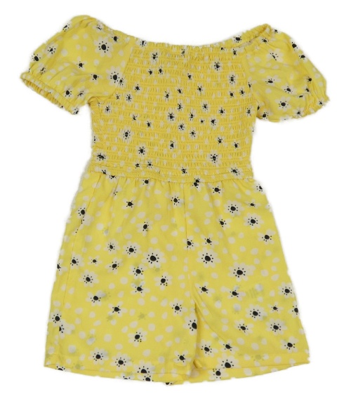Žluto-bílý puntíkatý květovaný kraťasový overal PEP&CO