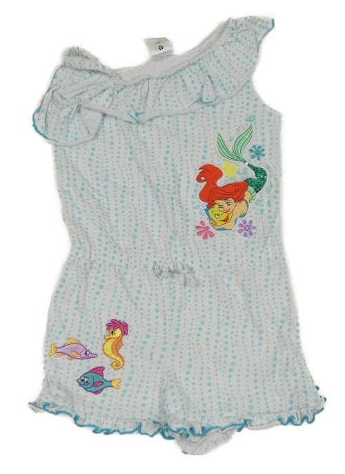 Bílo-světletyrkysový vzorovaný kraťasový overal s Ariel a volánky Disney