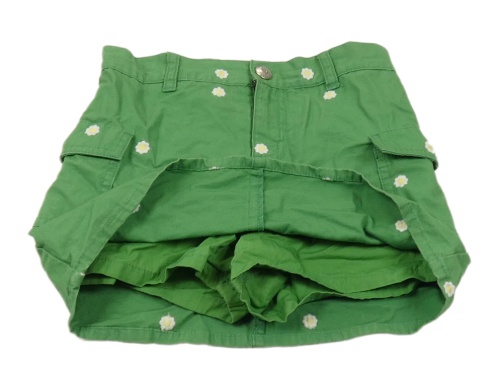 • Zelená plátěná cargo sukně s výšivkami květin a všitými kraťasy Gymboree