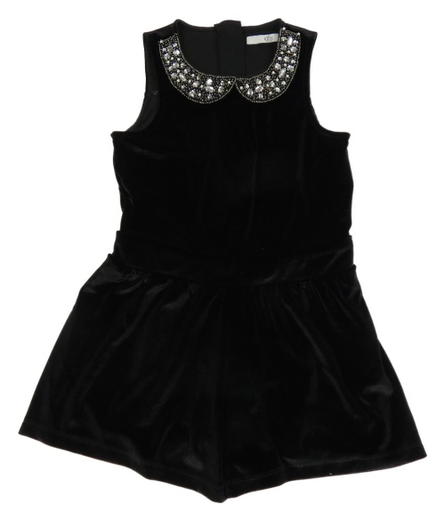 Černý sametový kraťasový overal s límečkem s korálky a kamínky M&S