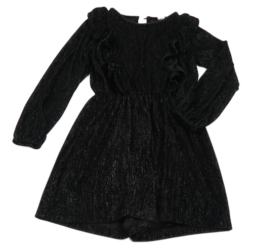 Černý sametový třpytivý kraťasový overal s volánky Tu