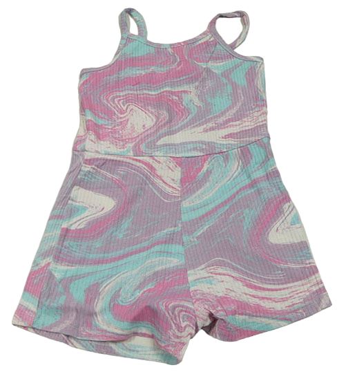 Bílo-modro-fialovo-růžový batikovaný žebrovaný kraťasový overal George