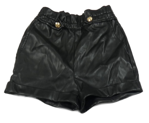 Černé koženkové kraťasy s gombíky River Island