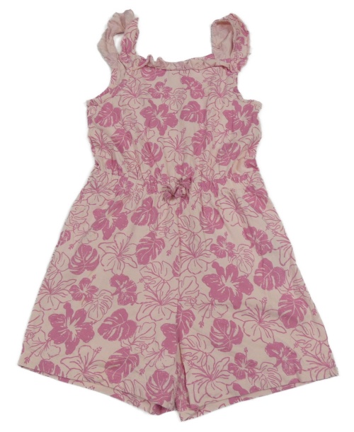 Světlerůžový bavlněný kraťasový overal s květy Primark