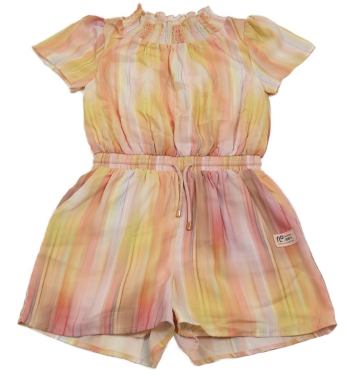 Žluto-růžový pruhovaný šifonový kraťasový overal