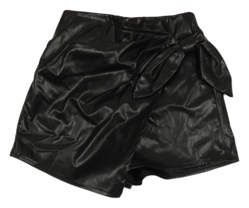 Černé koženkové sukňové kraťasy s mašlí Shein