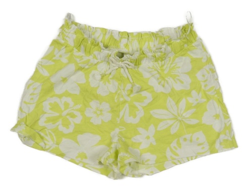 Limetkové paper bag kraťasy s bílými květy a lístečky a mašlí C&A