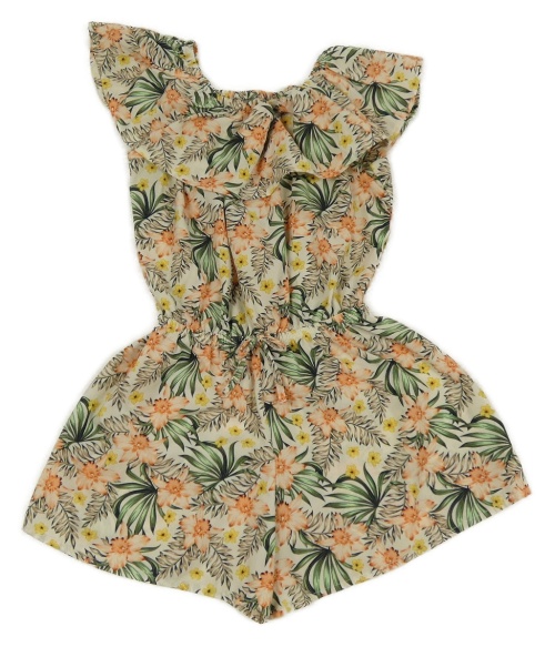 Béžový květovaný lehký kraťasový overal s listy a volánem Name it