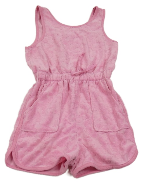Růžový froté/bavlněný kraťasový overal s kytičkami Matalan