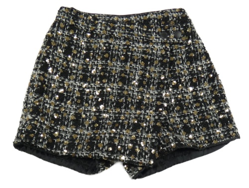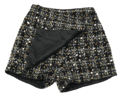 Černo-šedo-bílé vlněné sukňové kraťasy s flitry Nutmeg