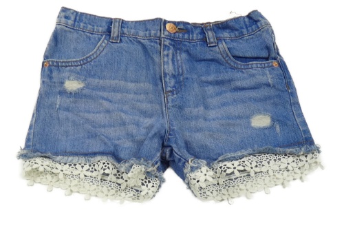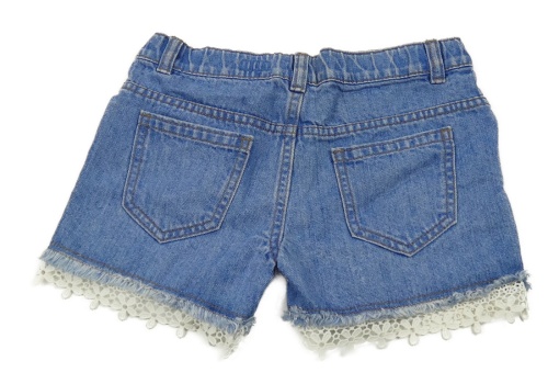 Modré riflové kraťasy s bílou krajkou