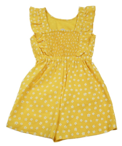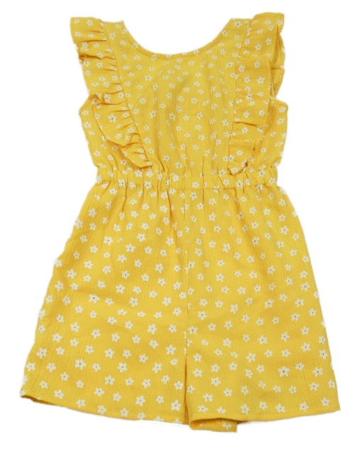 Žlutý kytičkovaný mačkaný kraťasový overal s volánky PRIMARK