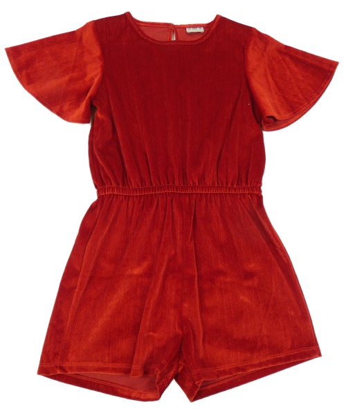 Červený třpytivý sametový kraťasový overal F&F