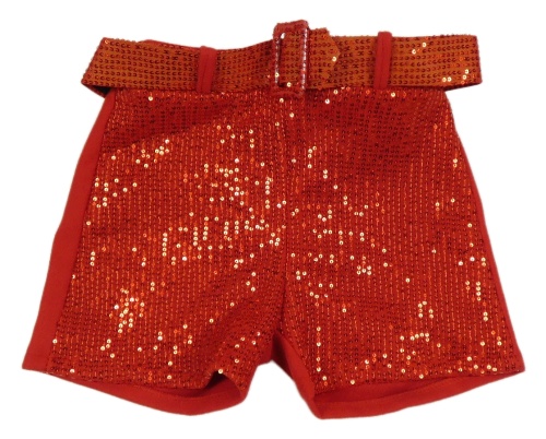 Červené flaušové kraťasy s flitry a páskem