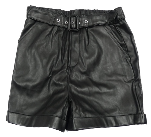 Černé koženkové sukňové kraťasy s páskem Primark