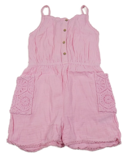 Růžový plátěný kraťasový overal s háčkováním Matalan