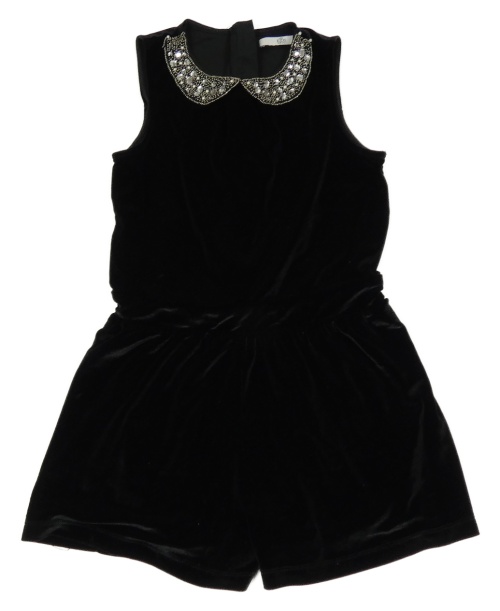 Černý sametový kraťasový overal s límečkem s korálky a kamínky M&S