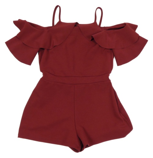 Vínový kraťasový overal s volánem River Island