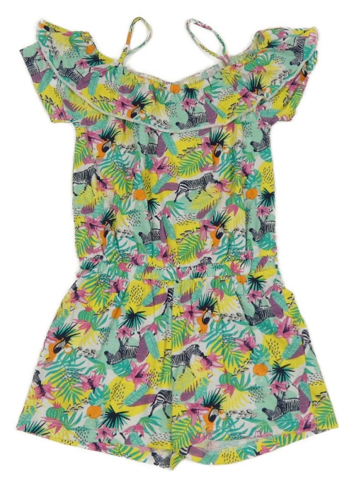 Bílo-barevný bavlněný kraťasový overal s listy a zebrami Kids