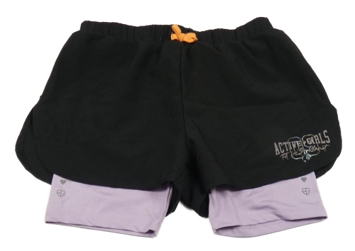 Černo-světlefialové šusťákové funkční dvojité kraťasy s nápisy a číslem C&A