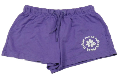 Fialové teplákové kraťasy s nápisem Destination