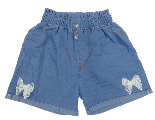 Modré riflové kraťasy s motýly